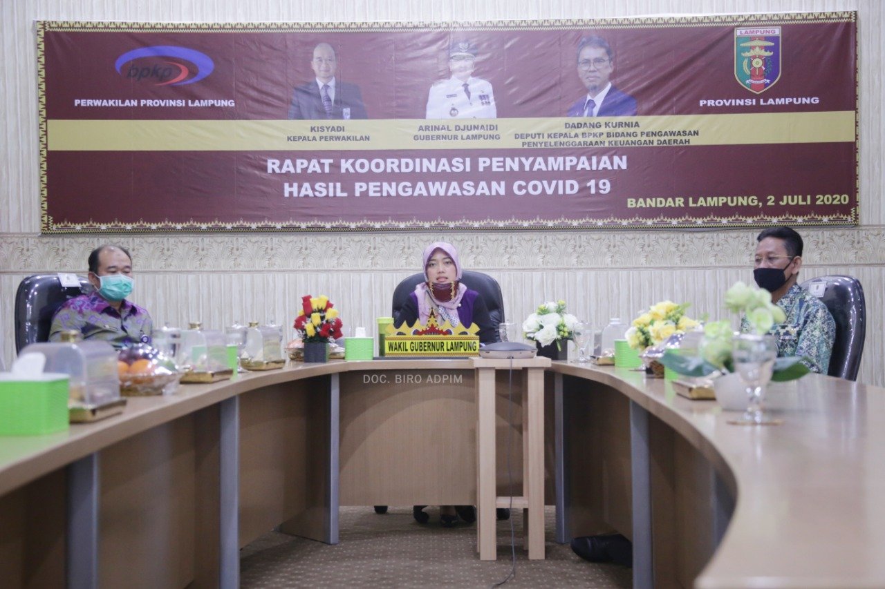 Wagub Nunik menyampaikan bahwa, Provinsi Lampung sangat mengapresiasi dan menyambut baik diselenggarakannya kegiatan ini walaupun di tengah mewabahnya pandemi Covid-19, namun tetap berkomitmen melaksanakan tugas dan memberikan berbagai masukan penting mengenai penanganan Covid-19 bagi Provinsi Lampung.