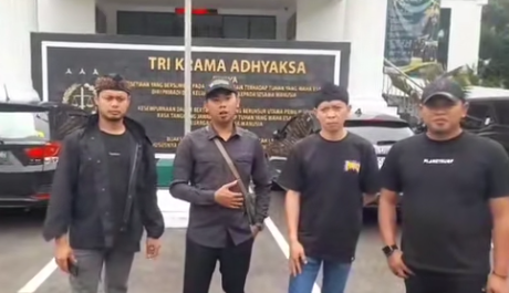 | Ketua pemuda Bojong Murni, Amran didampingi kang Iyan, Cecep dan Gofur di Kantor Kejaksaan Negeri Cibinong, Kamis (16/1/2025). |
