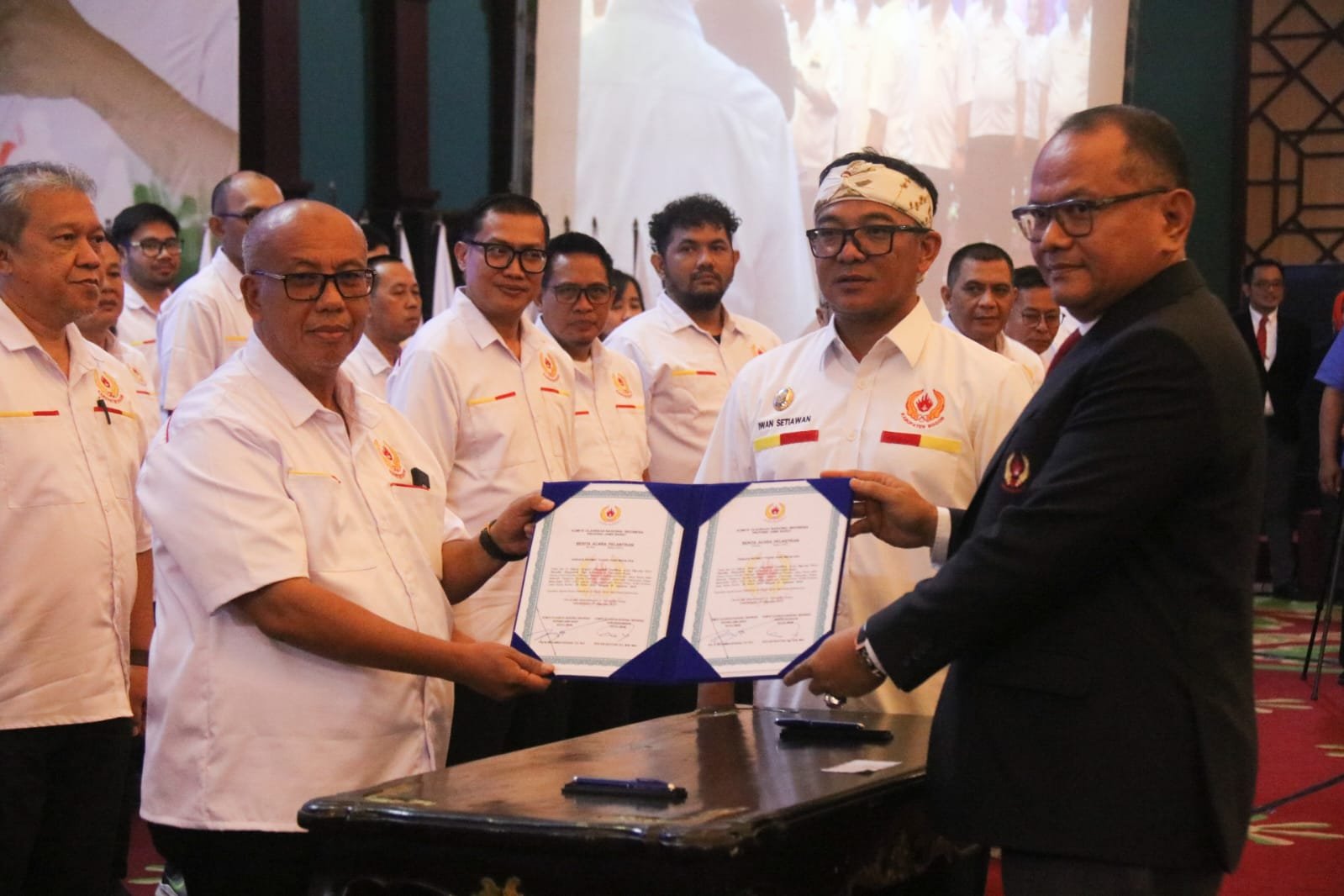 beserta jajarannya yang hadir untuk melaksanakan pelantikan pengurus KONI