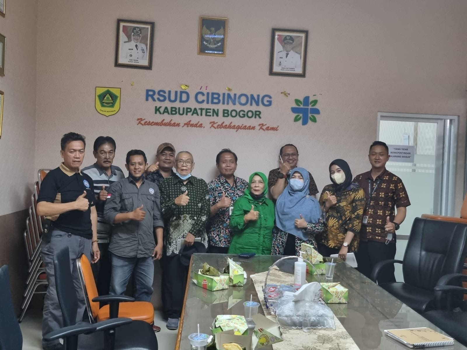 Dalam kesempatan itu jajaran pimpinan RSUD Cibinong hadir Kabag TU H Sholihin, S.KM, Kasubag Umum Irmayati, S.Sos, jajaran Subag Humas Irpan Setiawan, SE, Pegi Andaya, SH dan Gumilar, S.Sos yang akrab disapa GG.
