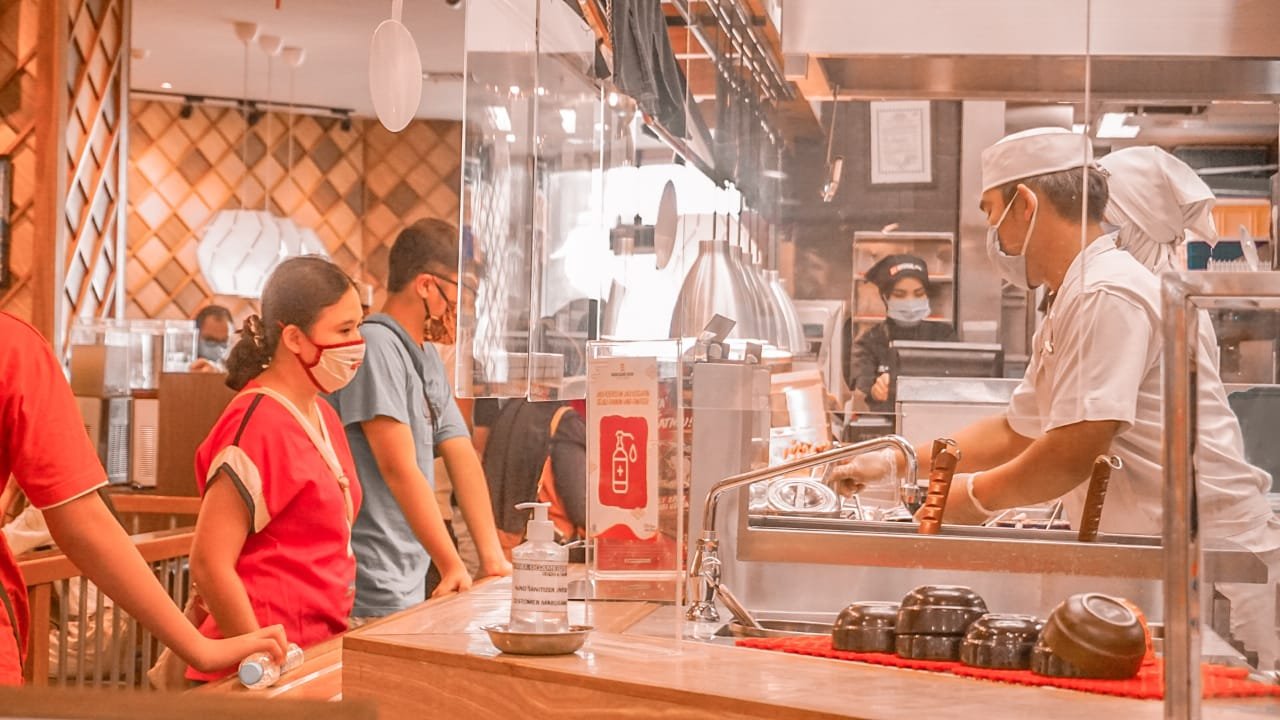 Hal ini dibuktikan dengan semua orang yang akan memasuki area mall mengenakan masker, semua orang yang ada di area mall mengenakan sticker yang menunjukkan suhu tubuhnya di