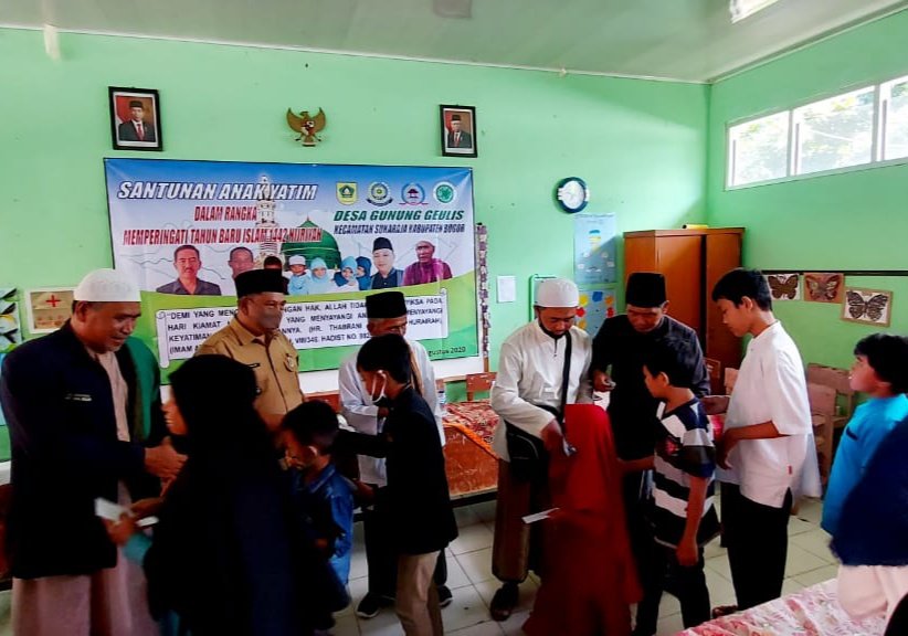Kepala Desa Gunung Geulis Martin Menteng Rabook mengatakan santunan yatim merupakan agenda rutin tahunan yang dilaksanakan setiap bulan Muharram. Tahun ini pelaksana santunan berbeda dari tahun sebuah, dimasa Pandemi Covid-19, santunan yatim tingkat desa dilaksanakan menggunakan anggaran Desa sebesar 20 juta.