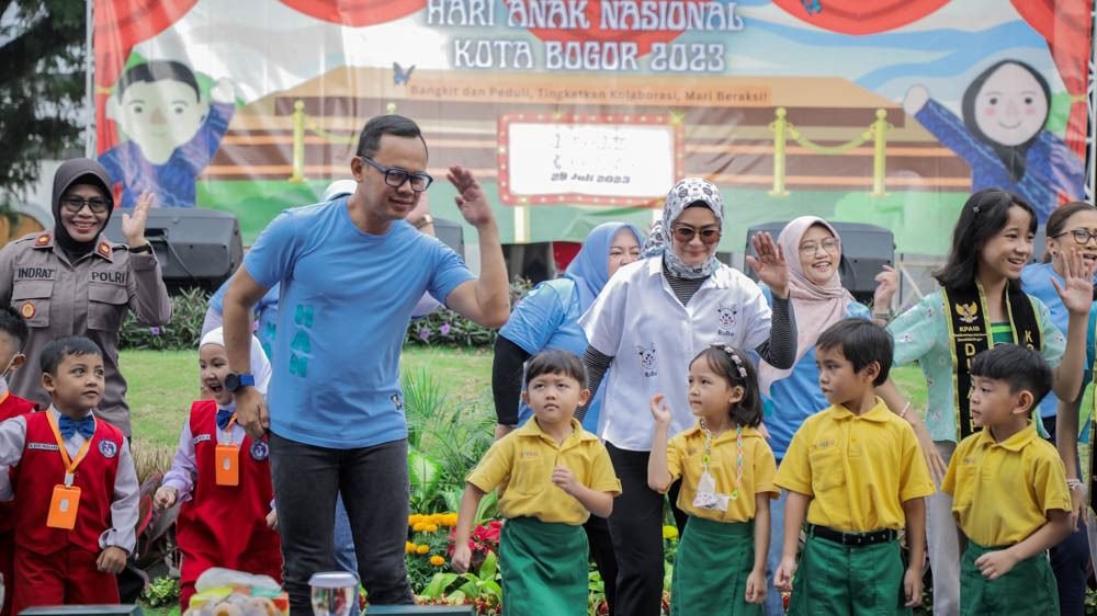 BOGOR, DINAMIKA NEWS — Ragam pola lucu dan tingkah laku menggemaskan ditunjukkan anak-anak, khususnya anak usia taman kanak-kanak (TK) saat menjawab pertanyaan yang disampaikan Wali Kota Bogor, Bima Arya dalam peringatan Hari Anak Nasional (HAN) Tingkat Kota Bogor Tahun 2023 di Alun-alun Kota Bogor, Sabtu (29/7/2023).