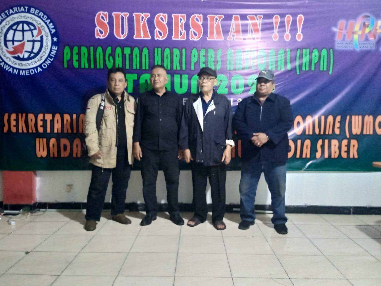 Candra Masturo dari PWRI Bogor Raya dan Ketua Umum PANNA Naftali Periwarissa alias Bang Napi foto bersama Ketua Umum Sekber WMO Drs H Bustanul Daham, M.Si dan Ketua Panitia HPN 2023 Sekber WMO Edi Johardin.