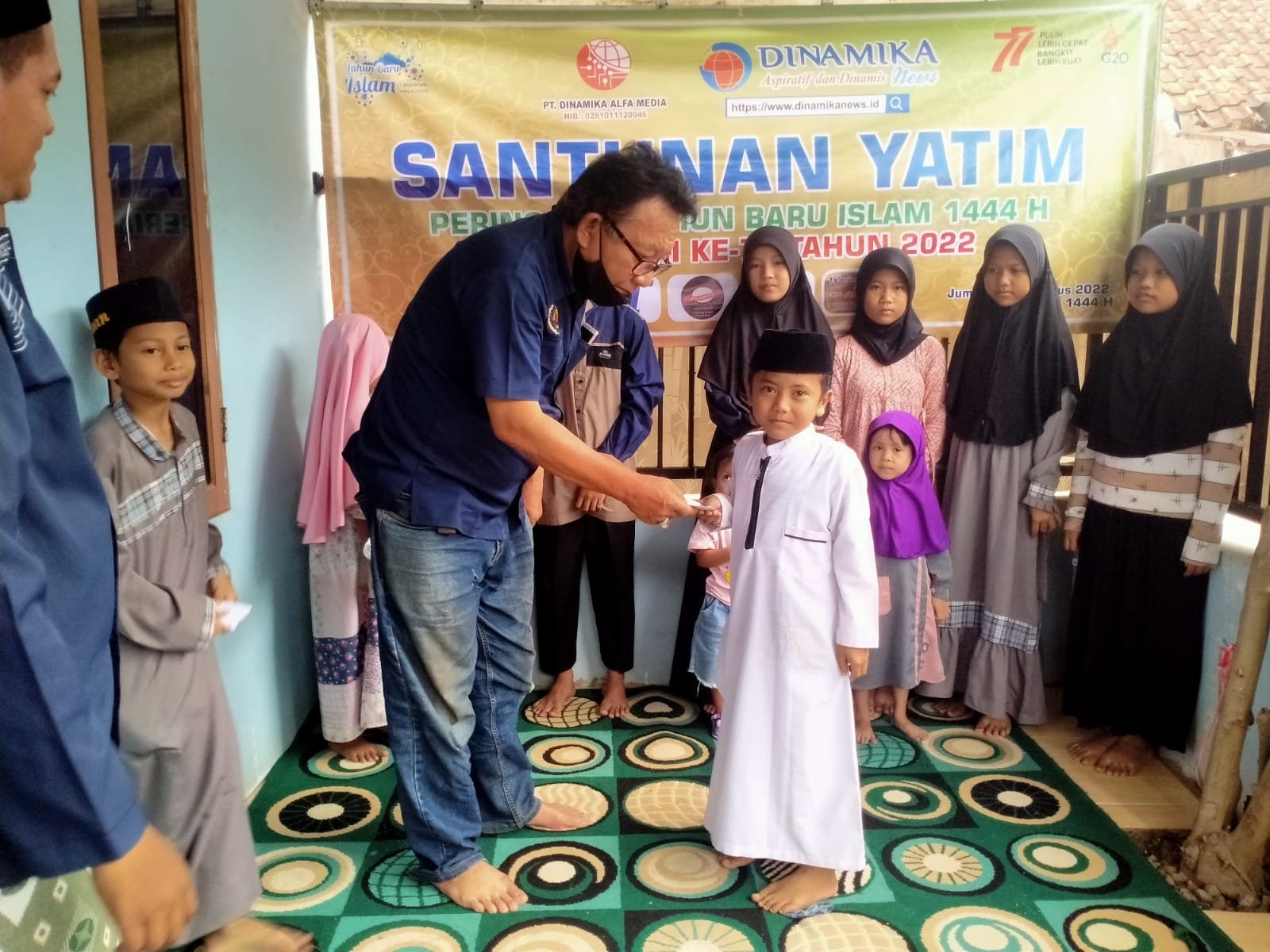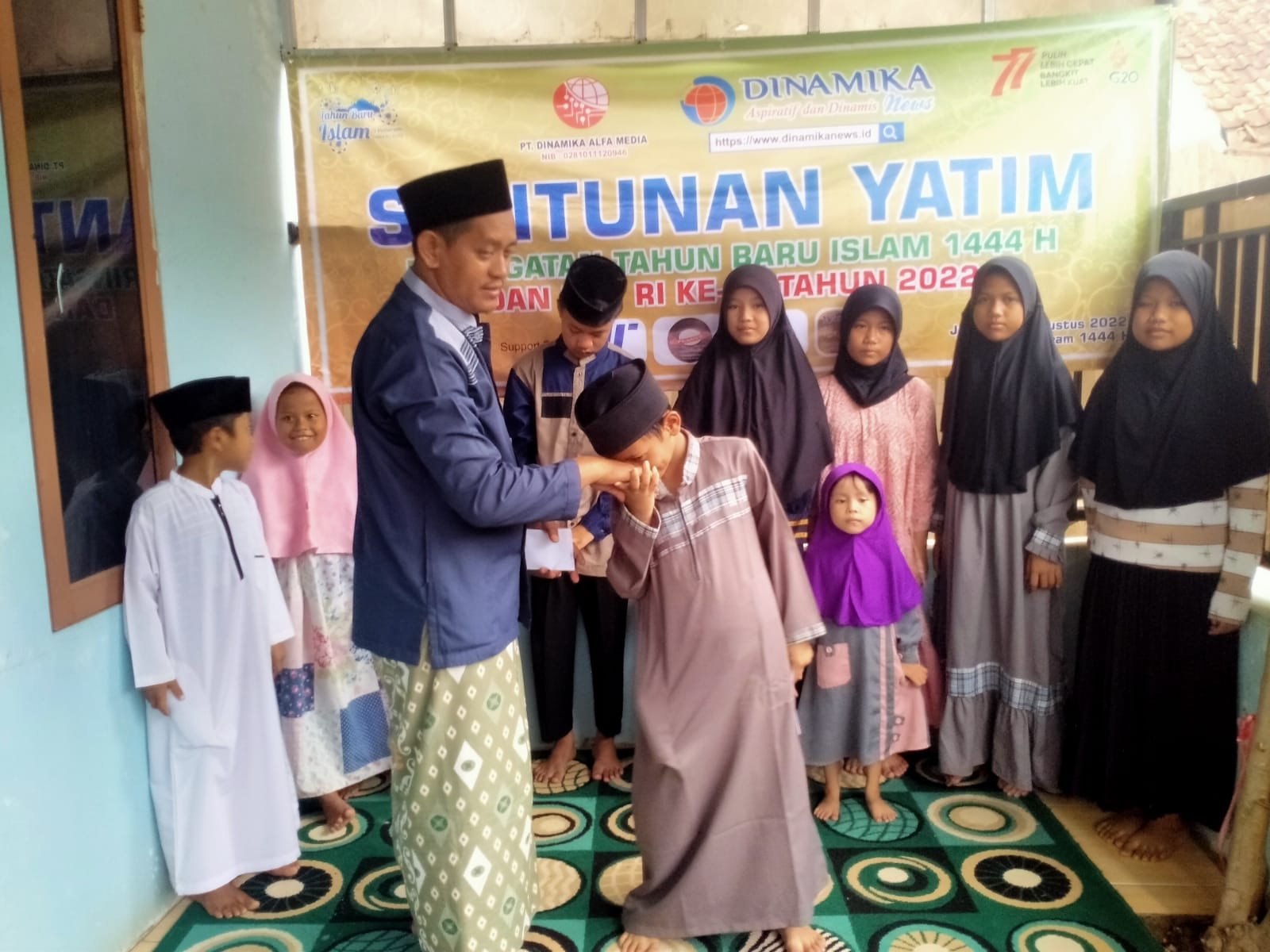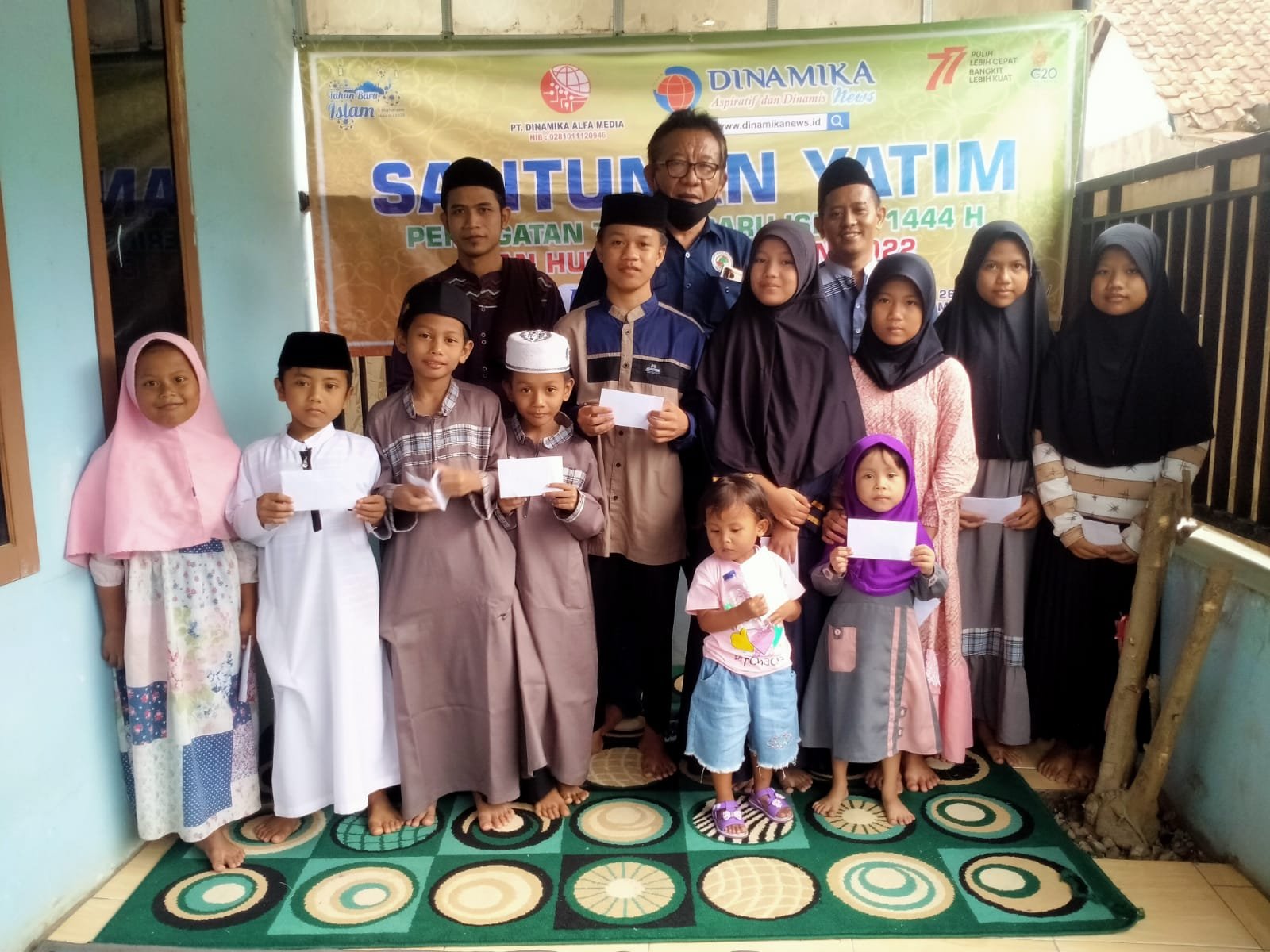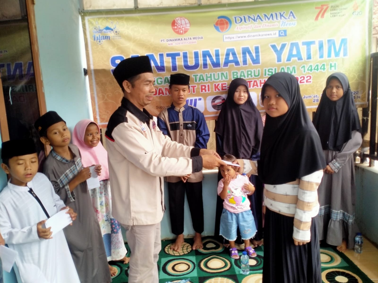 Pemimpin Umum Dinamika News Abdul Manan mengatakan santunan yatim berasal dari keluarga besar dinamika news dalam rangka memperingati tahun baru Islam 1444 Hijriah dan HUT RI ke-77.