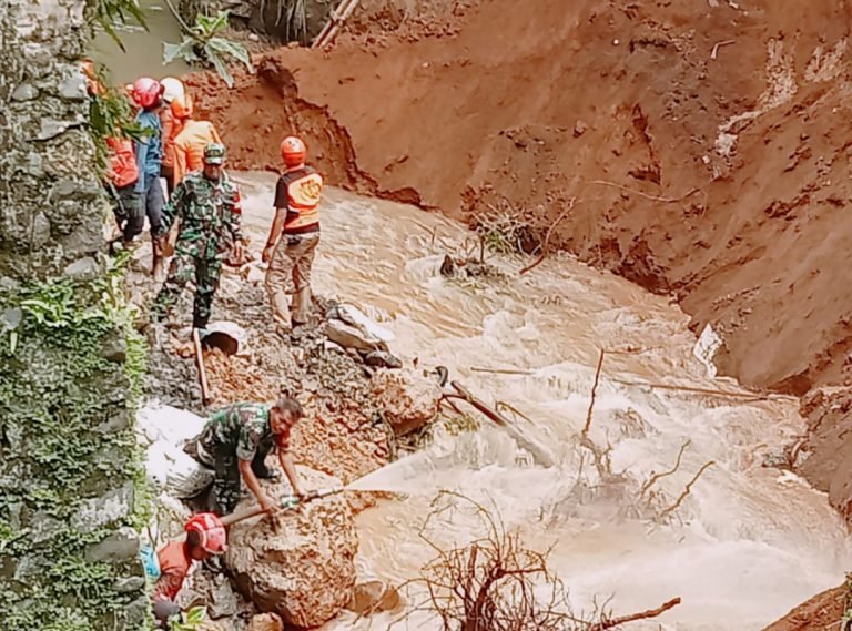 Dilaporkan, tanah longsor berlokasi di tempat akan di Buat TPT (Talud Penahan Tanah) di deket Jembatan Tajur RT 02/04 Kelurahan Muarasari,” ungkap Babinsa Kelurahan Muarsari Peltu Bambang Gunawan.