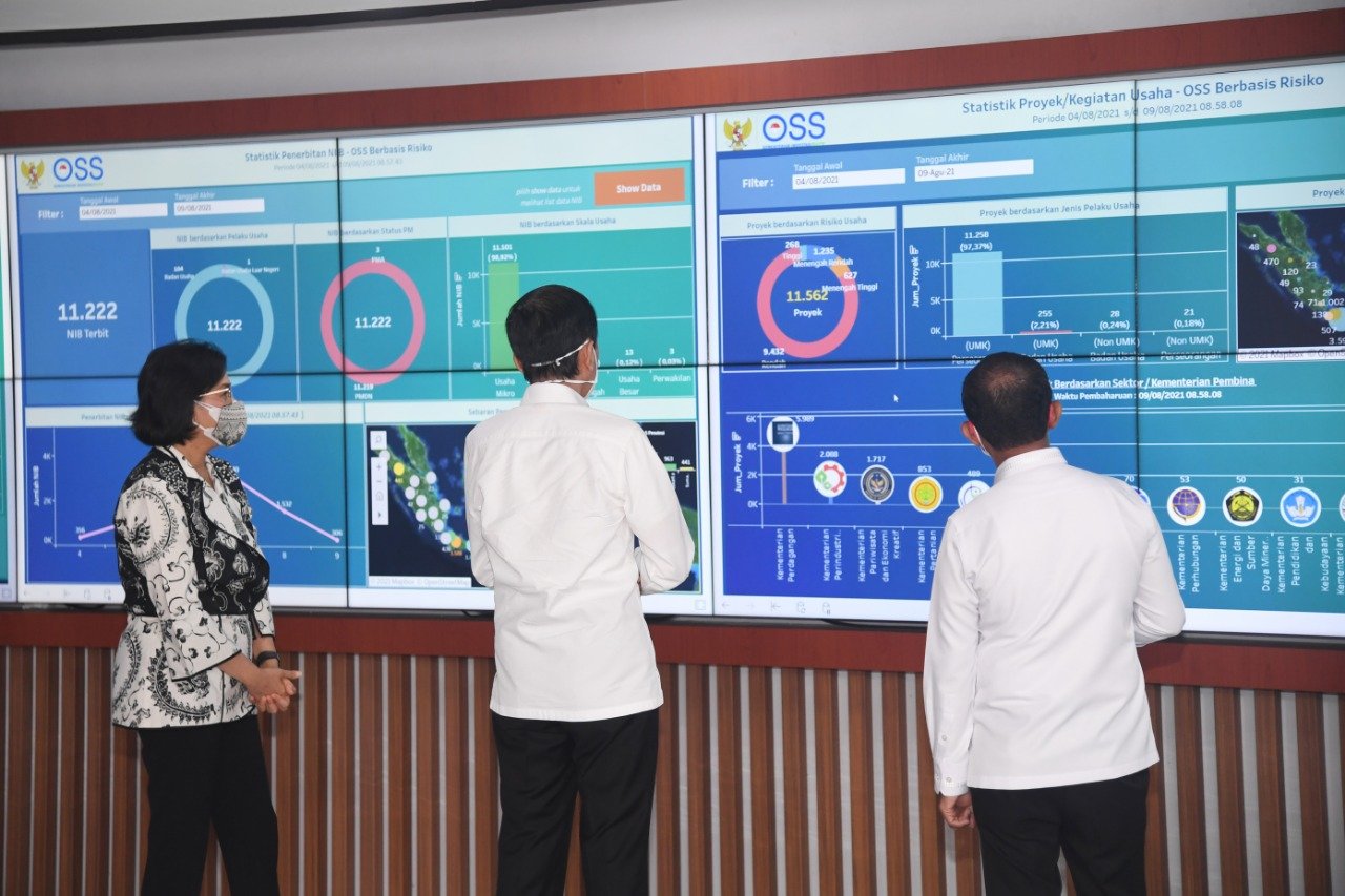 Jakarta, DinamikaNews — Presiden Joko Widodo meresmikan peluncuran Online Single Submission (OSS) berbasis risiko dalam perizinan berusaha, pada Senin, 9 Agustus 2021, di Pusat Komando Operasi dan Pengawalan Investasi, Kementerian Investasi/Badan Koordinasi Penanaman Modal (BKPM), Jakarta. Presiden berharap agar iklim kemudahan berusaha di Indonesia menjadi semakin baik.