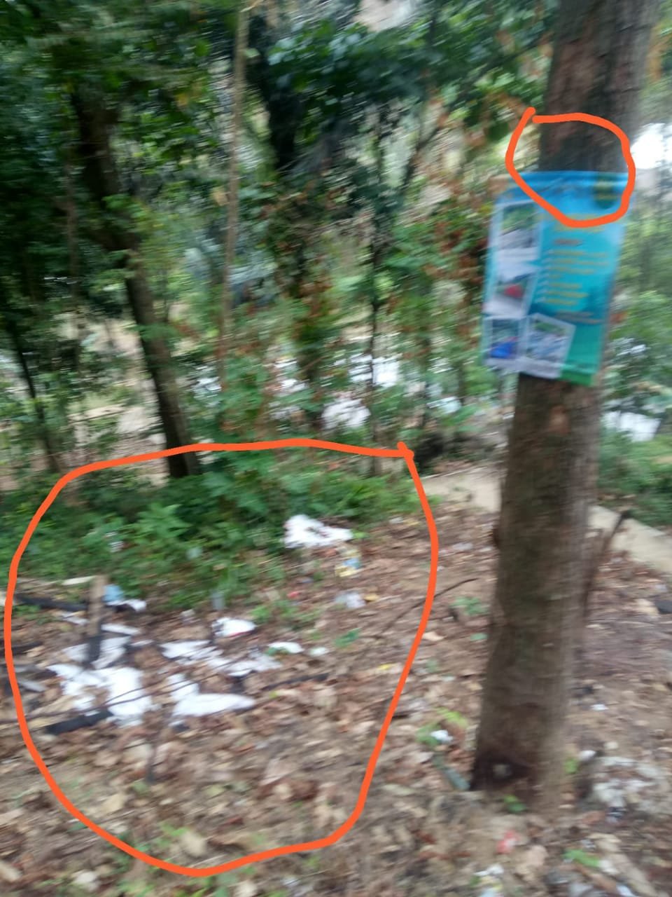 | Sampah berserakan dan pohon dipaku dikawasan wisata |
