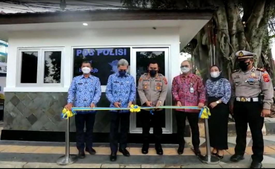 Bogor, Dinamika News — Kapolresta Bogor Kota Kombes Pol Susatyo Purnomo Condro di dampingi Wakil Walikota Bogor Deddi A Rachim dan Pimpinan Cabang BJB ( Bank Jabar Banten ) kota Bogor M. Aditya Wiradharma, resmikan Pos Polisi Lalu Lintas ( Pospol ) Jln Kapt Muslihat Bogor, Lewat dana CSR dari Bank Jabar Banten.