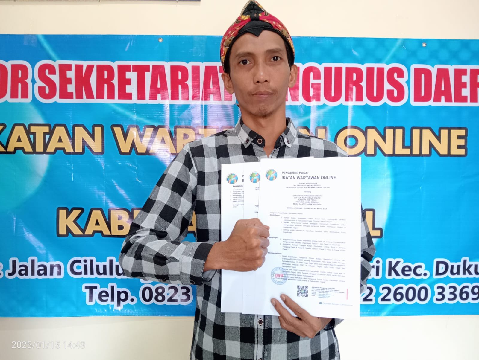 | Achmad Sholeh mendapatkan SK sebagai Ketua IWO Kabupaten Tegal Periode 2025-2030. |