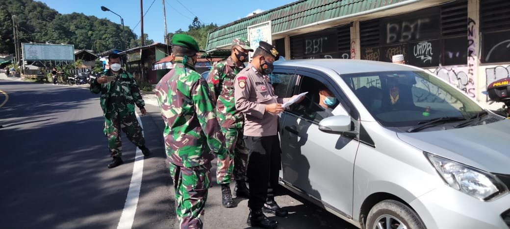 Bogor, DinamikaNews — Polsek Cisarua bersama Satpol PP, Dishub dan Koramil melaksanakan kegiatan PPKM Darurat gabungan dipimpin Kapolsek Cisarua Kompol Supriyanto, berlokasi di Jl. Raya Puncak Rindu Alam menuju perbatasan Kab. Bogor dengan Cianjur, Jumat (9/7/2021).