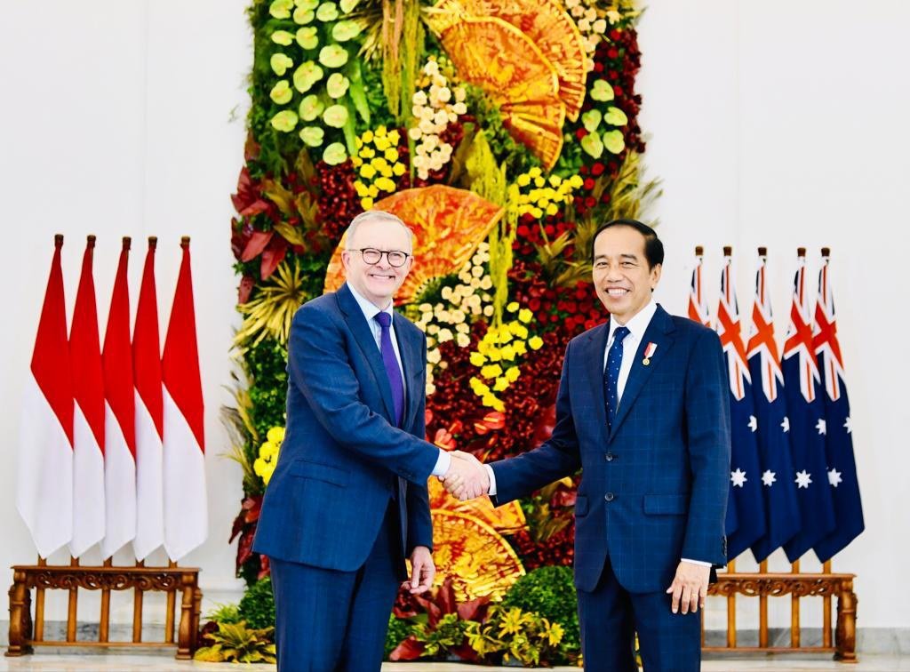 Bogor, Dinamika News — Presiden Joko Widodo menggelar pertemuan bilateral dengan Perdana Menteri (PM) Australia Anthony Albanese dalam kunjungan resminya ke Istana Kepresidenan Bogor, Jawa Barat, pada Senin, 6 Juni 2022. Dalam pertemuan tersebut, kedua pemimpin negara membahas sejumlah upaya kerja sama bilateral utamanya dalam bidang ekonomi.