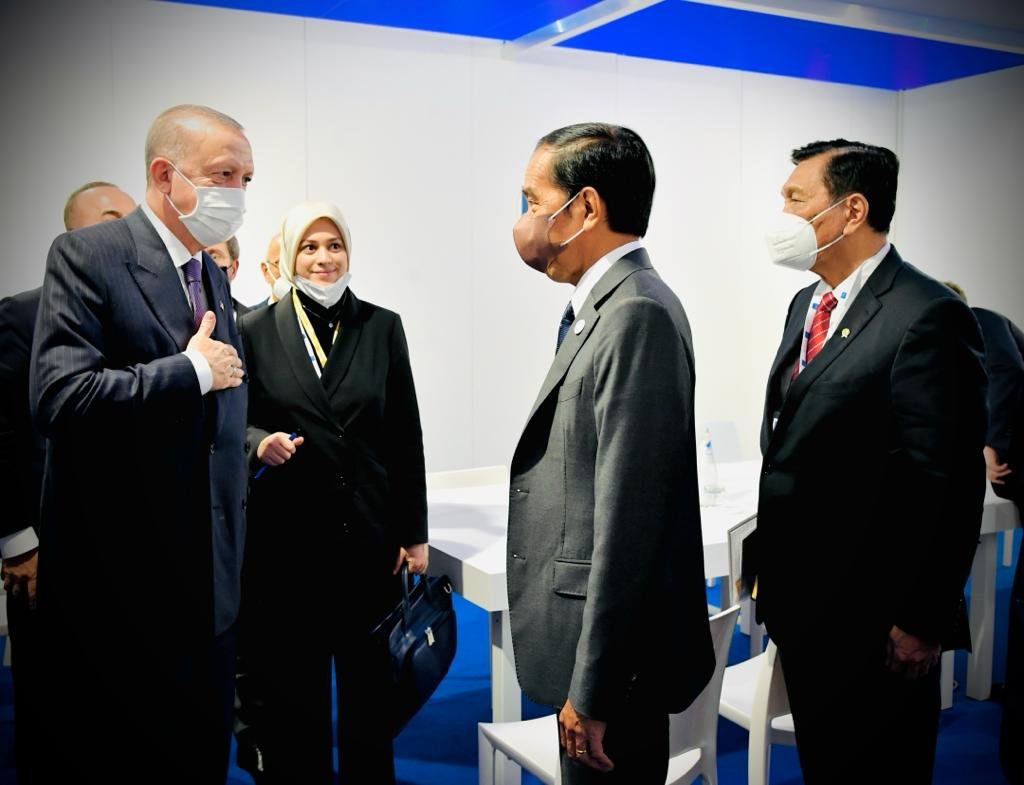 Roma, DinamikaNews — Di sela-sela rangkaian acara KTT G20 yang digelar di La Nuvola, Roma, Italia, pada Sabtu, 30 Oktober 2021, Presiden Joko Widodo menggelar pertemuan bilateral dengan Presiden Turki Recep Tayyip Erdogan. Kedua Presiden membahas sejumlah hal, antara lain rencana kunjungan Presiden Erdogan ke Indonesia.