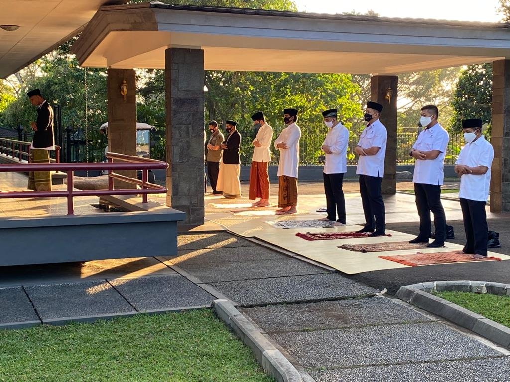 Dinamika News, Bogor — Presiden Joko Widodo dan Ibu Negara Iriana bersama putra bungsu mereka, Kaesang Pangarep, melaksanakan salat Iduladha 1441 H di halaman kediaman, Wisma Bayurini, kompleks Istana Kepresidenan Bogor, Jawa Barat, pada Jumat pagi, 31 Juli 2020.