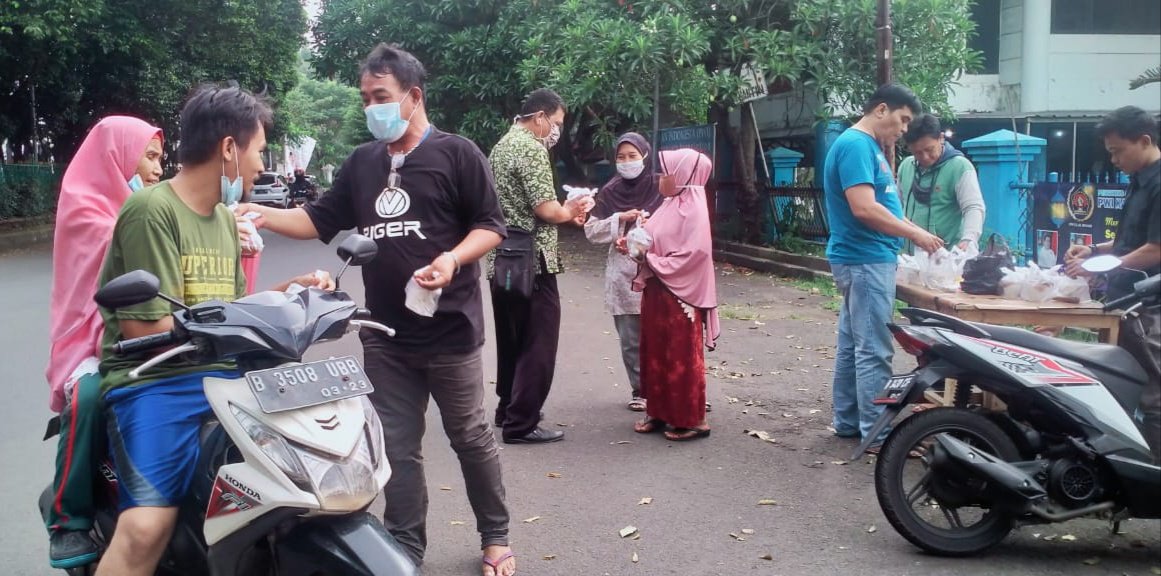BOGOR, DinamikaNews.id — Persatuan Wartawan Indonesia (PWI) Kabupaten Bogor, membagikan takjil buka puasa kepada masyarakat yang melintas di depan kantor PWI Kabupaten Bogor, Jalan Bersih No 1, Kelurahan Tengah Kecamatan Cibinong, Kabupaten Bogor, Senin (3/5/21).