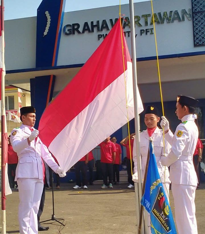 PWI Kabupaten Bogor menggandeng sedikitnya 10 orang siswa SMA Negeri 3 Cibinong (SMANTIC) sebagai petugas upacara dan pengibar bendera merah putih.