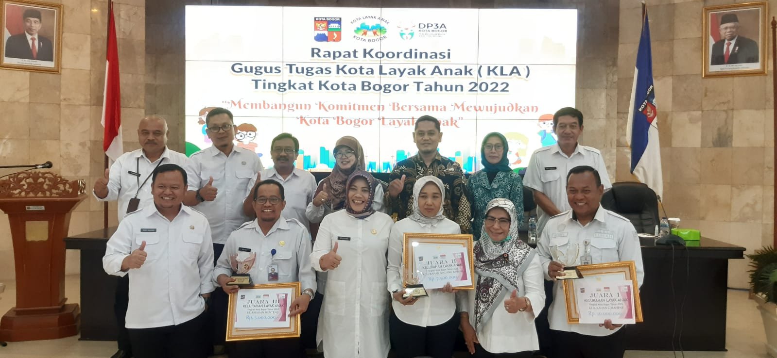 DP3A Kota Bogor menetapkan hasil penilaian dengan rincian Kelurahan yang keluar menjadi juara Kelurahan Layak Anak dengan predikat, diantaranya :