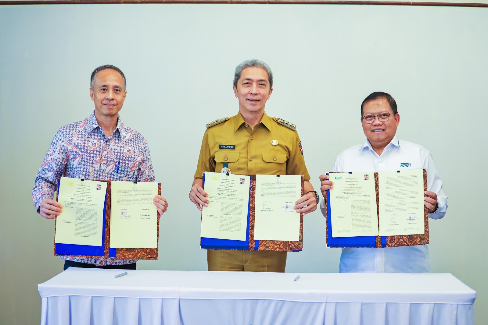 | Pemkot Bogor menandatangani Nota Kesepahaman (MoU) dengan PT Trans Jabar Tol dan PT Suryamas Duta Makmur untuk pembangunan akses ramp off Tol Ciawi Selatan, Selasa (15/7/2025). |