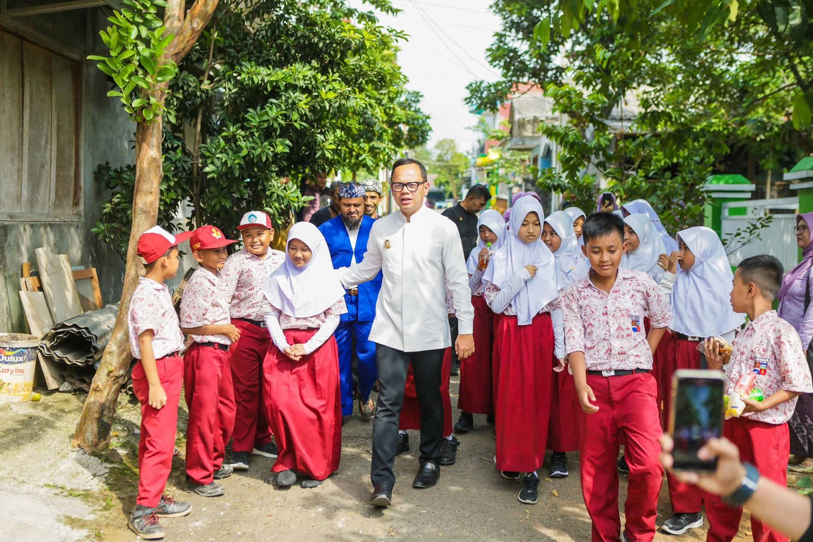 Bima Arya mengajak anak-anak di SDN Kencana 2 yang tinggal