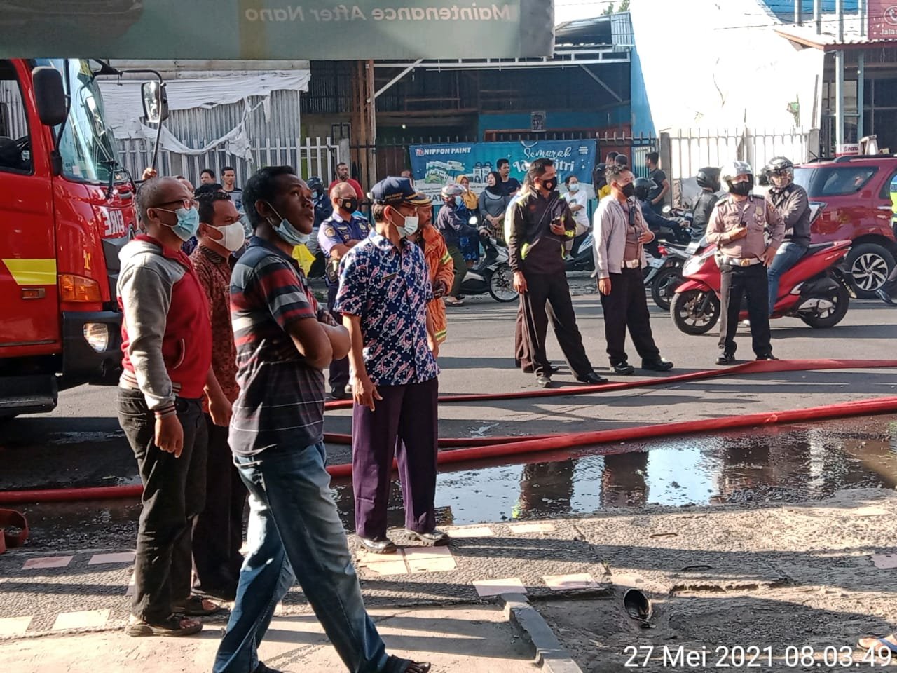 Menurut warga yang berada di sekitaran lokasi kejadian mengatakan, peristiwa berlansung begitu cepat. Awan hitam mengelimuti saat kebakaran terjadi. Warga menyebut asap tebal yang bersumber dari dalam ruko penjual sepatu.