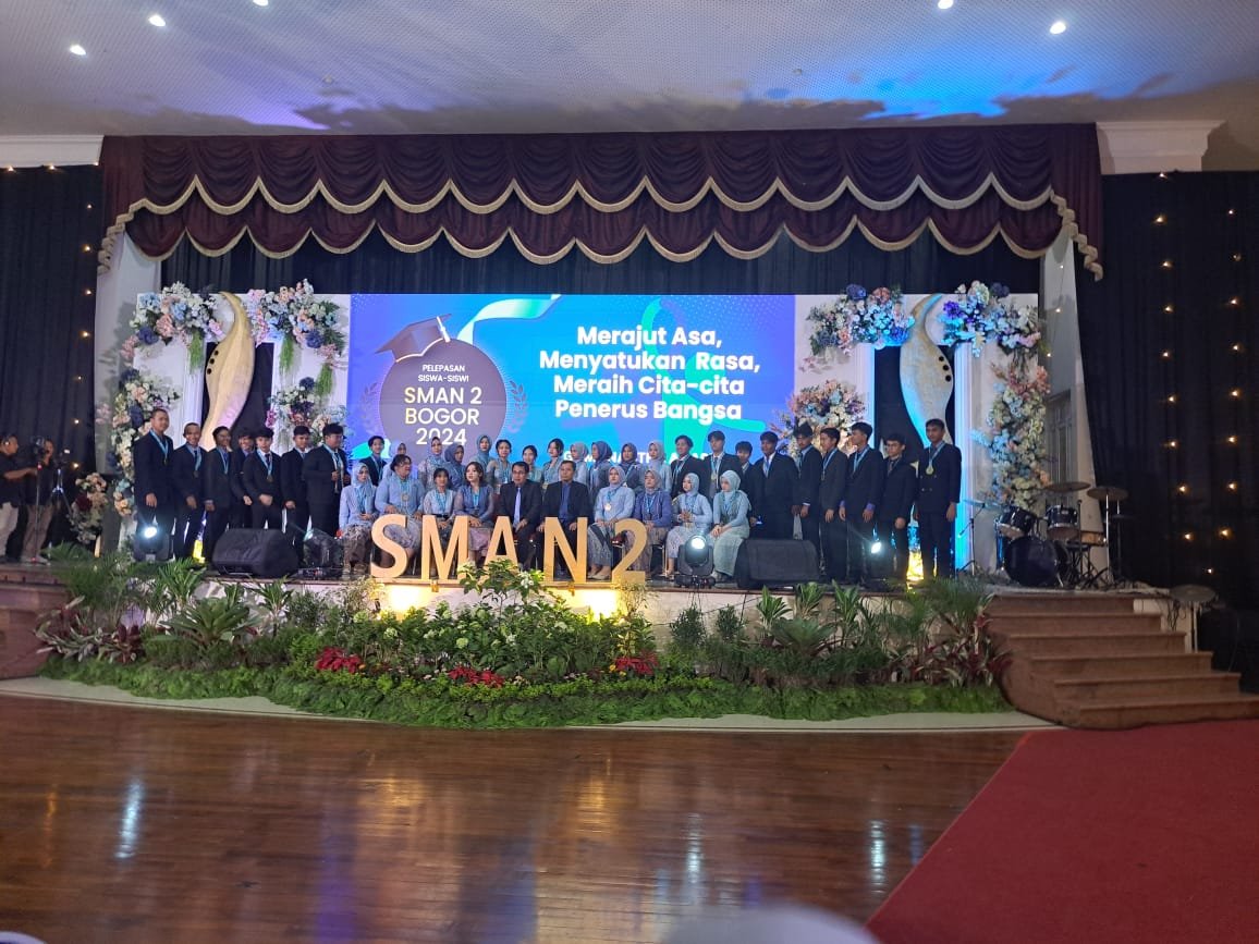 Waka Siswa SMA Negeri 2 Kota Bogor Muhadi mengaku sangat bangga dan bahagia banyaknya anak didik berprestasi dari SMA Negeri 2 Kota Bogor yang pada hari ini, akan melepas perpisahan kelas XII sebanyak 354 Siswa Siswi lulus 100 persen dan 65 peserta didik yang sudah lolos lewat jalur prestasi ini, merupakan Sekolah sangat baik dan berprestasi diterima di di perguruan tinggi,”jelasnya.