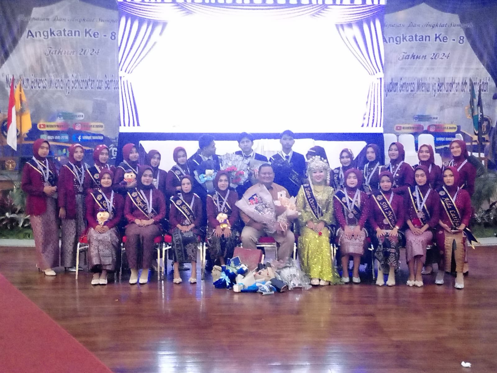 BOGOR, DINAMIKA NEWS — Sekolah Menengah Kejuaraan (SMK) Kesehatan Prof DR Moestopo yang terletak di Jalan Raya Cibeber Desa Leuwisadeng Kecamatan Leuwisadeng, Kabupaten Bogor, menggelar pelepasan dan angkat sumpah angkatan ke-8 tahun pelajaran 2023-2024 di Gedung Braja Mustika Kota Bogor, Rabu (26/6/2024).