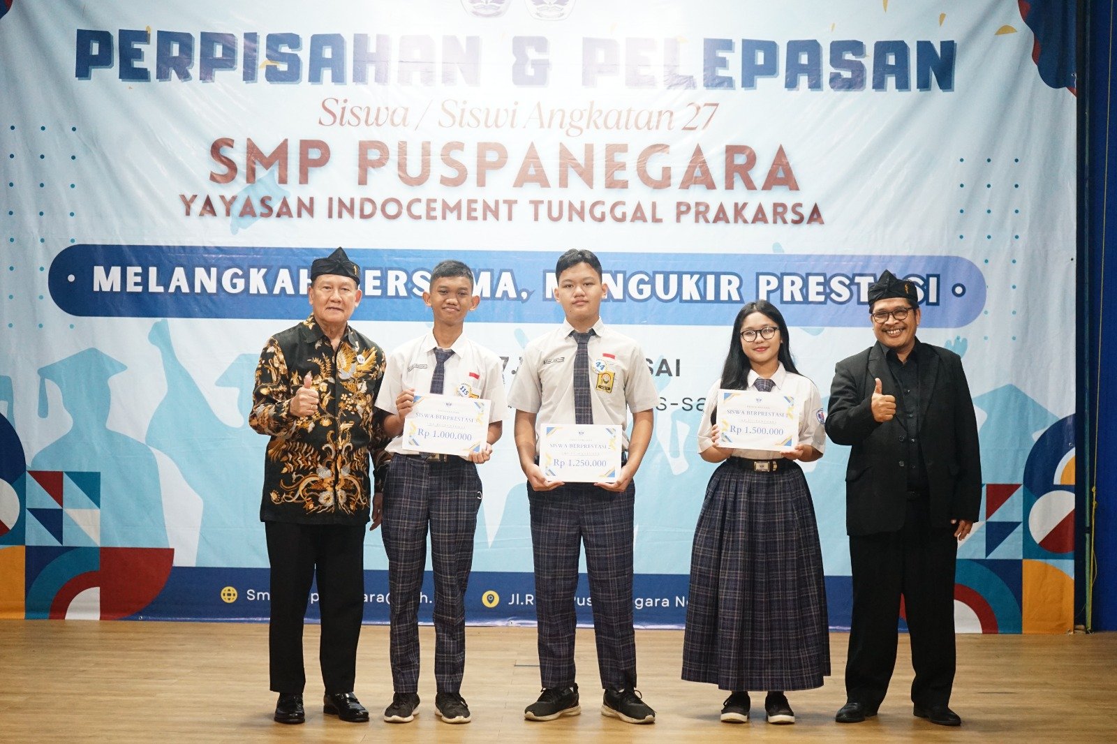 “Jangan berhenti menuntut ilmu. Perjalanan kalian masih panjang. Kami bangga atas kepercayaan orang tua yang telah menyerahkan pendidikan anak-anaknya di SMP Puspanegara selama tiga tahun terakhir,” tuturnya.