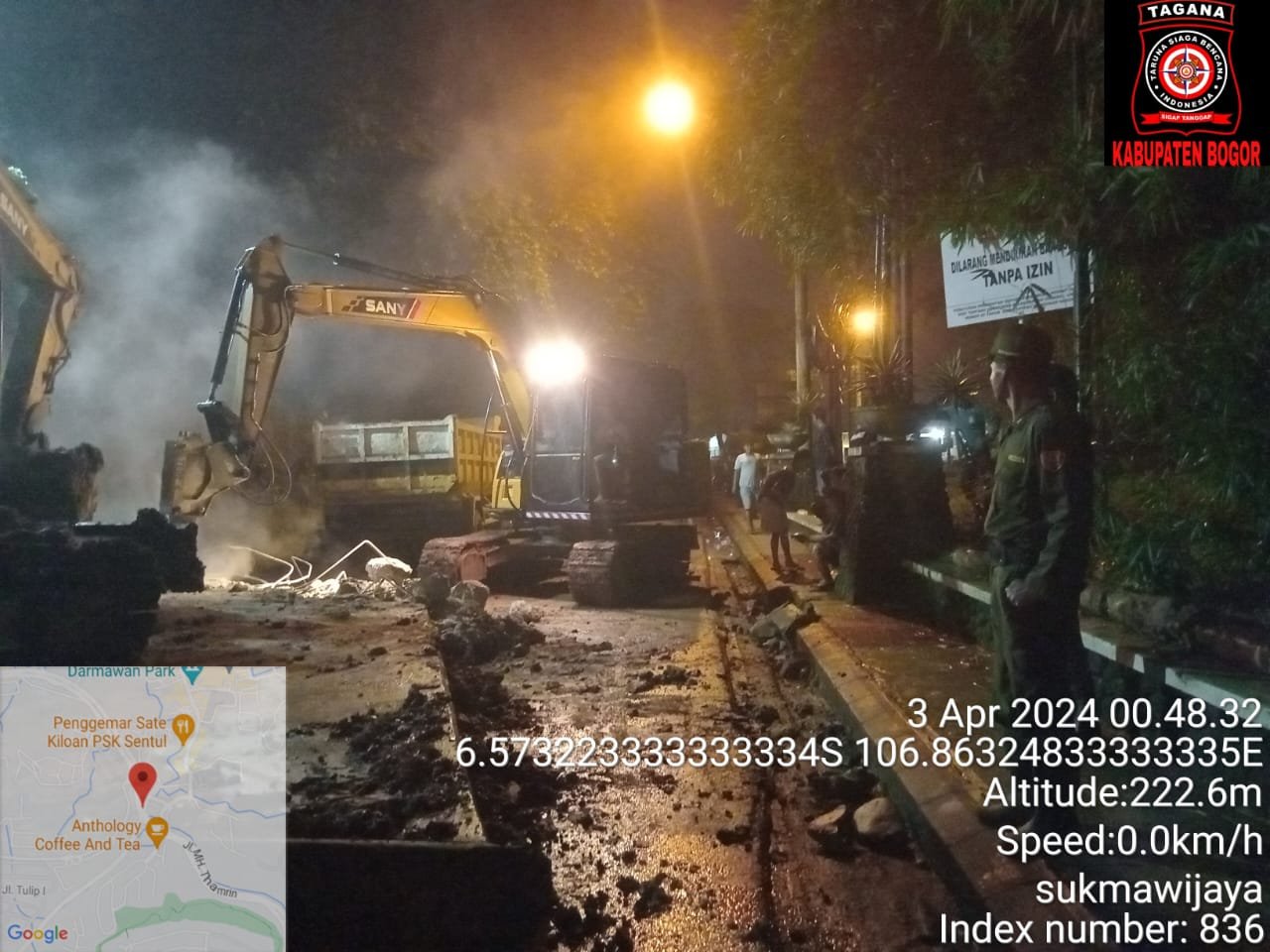 Bersamaan dengan waktu ibadah Ummat Islam menjalankan Sholat Taraweh, telah terjadi tanah longsor tebing Underpass Alternatif kawasan elit Sentul City arah Desa Cijayanti, Kabupaten Bogor.