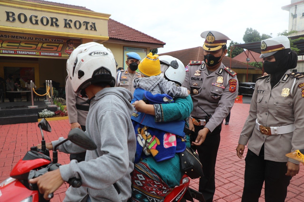 "Kita juga memberikan bingkisan berupa makanan buat anak anak yang lewat. Polres Bogor Kota menyiapkan 40 paket makanan selama operasi berlangsung," kata Kompol Galih.
