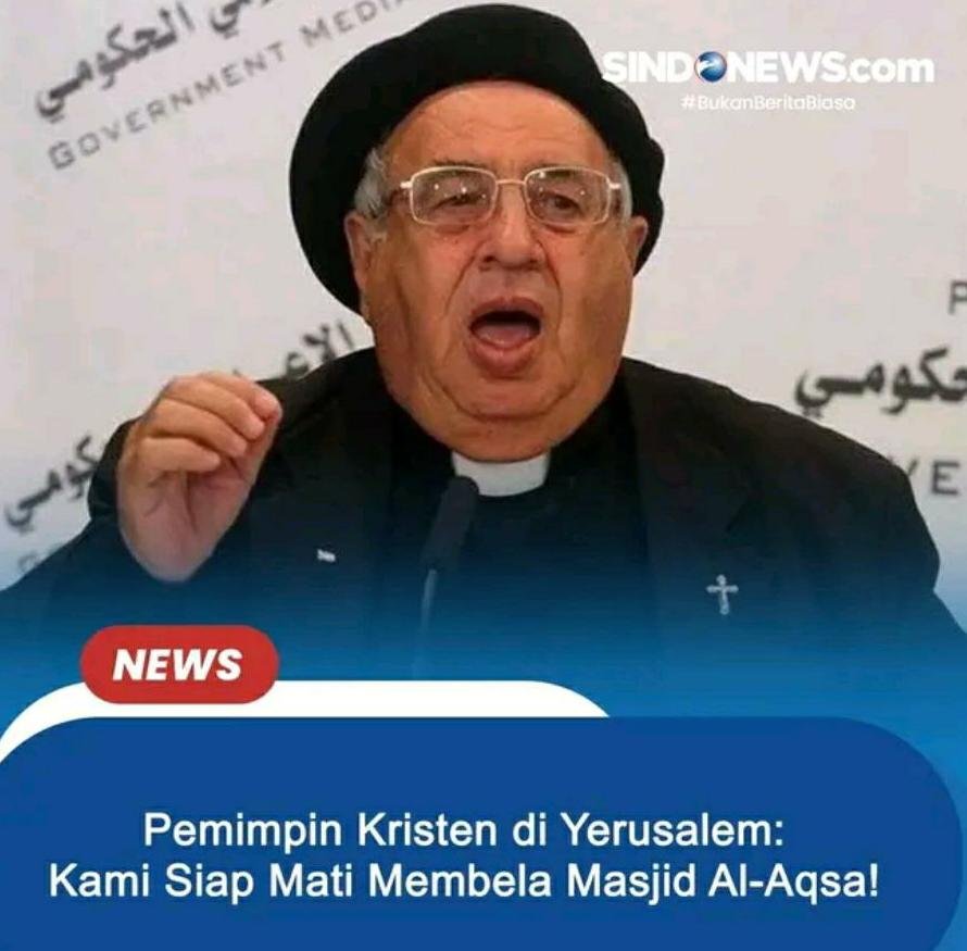 Tokoh Kristen senior di Palestina itu mengatakan, umat Kristen akan membela Masjid Al-Aqsa dan umat Islam akan membela Gereja Makam Suci.