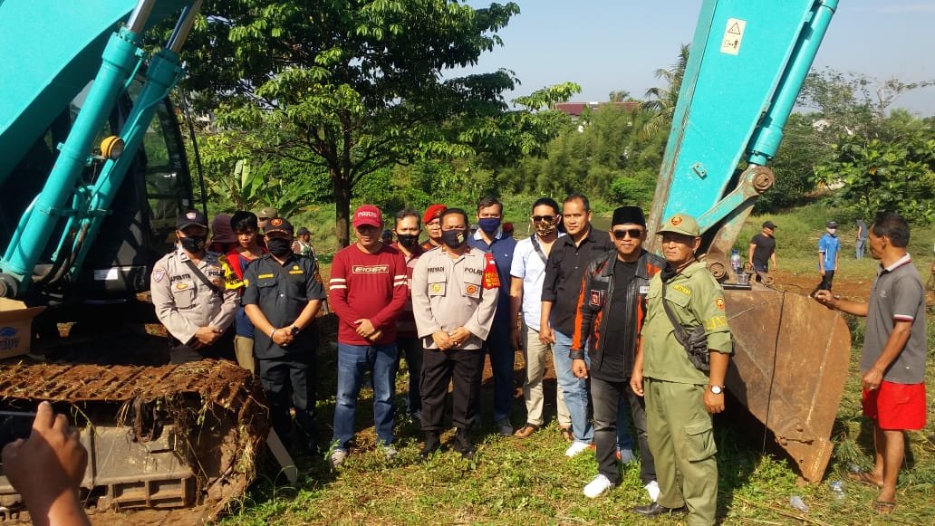 Dinamika News, Bogor — Sebidang tanah telah di hibahkan oleh pihak PT. Lingga Elok dengan luas enam ribu meter persegi guna perluasan pemakaman dan pembangunan Masjid. Warga setempat giat melaksanakan gotong royong untuk kebersamaan program pembangunan wilayah di Kampung Cipeucang Desa Cimanggis Kecamatan Bojong Gede Kabupaten Bogor.