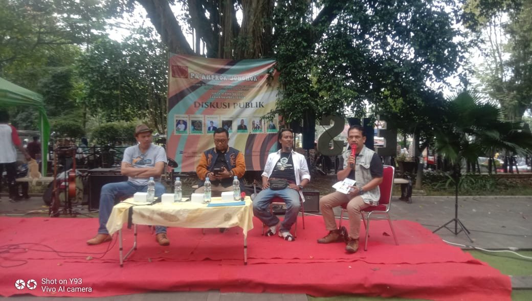 BOGOR, DINAMIKA NEWS — Yayasan Keboen Sastra salah satu kelompok yang mewadahi seniman jalanan di Bogor pekan lalu di Taman Ekspresi Sempur Bogor Tengah Kota Bogor menggelar Paamprok Jonghok (bertemu muka).